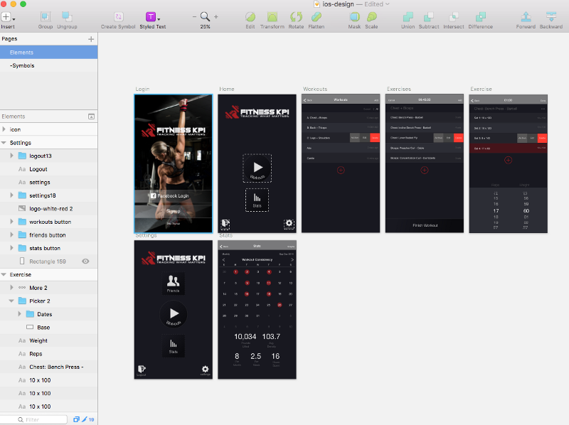 Next, we open Sketch.app and start creating the different screens. Focusing on the user interaction and functionality rather than style. We use basic styles without obsessing too much about things like colors, fonts and spacing (we will leave that to the Visual Design phase).