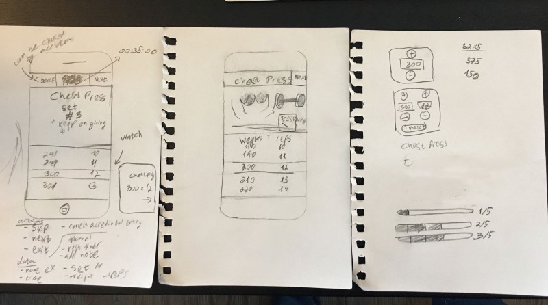 Now we are ready to start sketching some designs together. We chose to focus our limited time together figuring out what inputting information during a workout might look like.